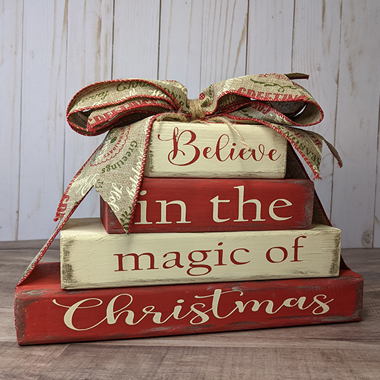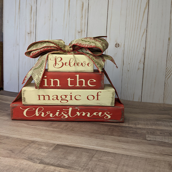 2×4 blocks of wood beautifully painted and wrapped with a matching bow.