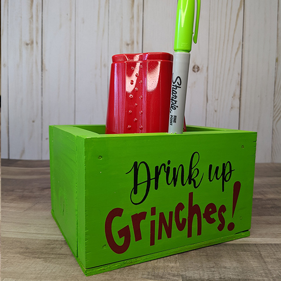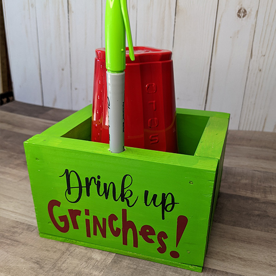 It’s finally here! The Mark your Cup and Drink Up cup holder is the perfect wooden cup holder for parties and more. Simply fill it with your favorite plastic cups and place a marker into the hole and your party guests can mark their cups easily.