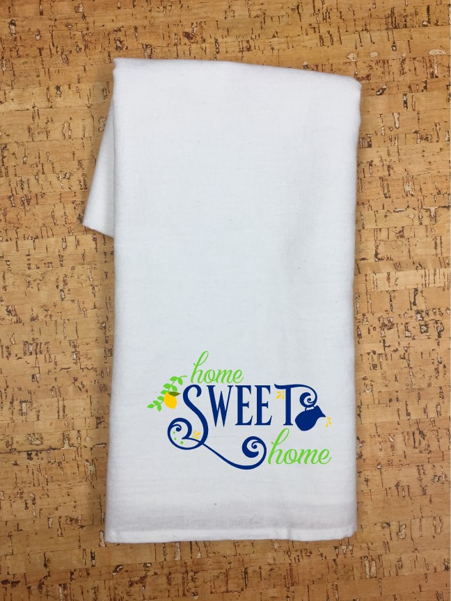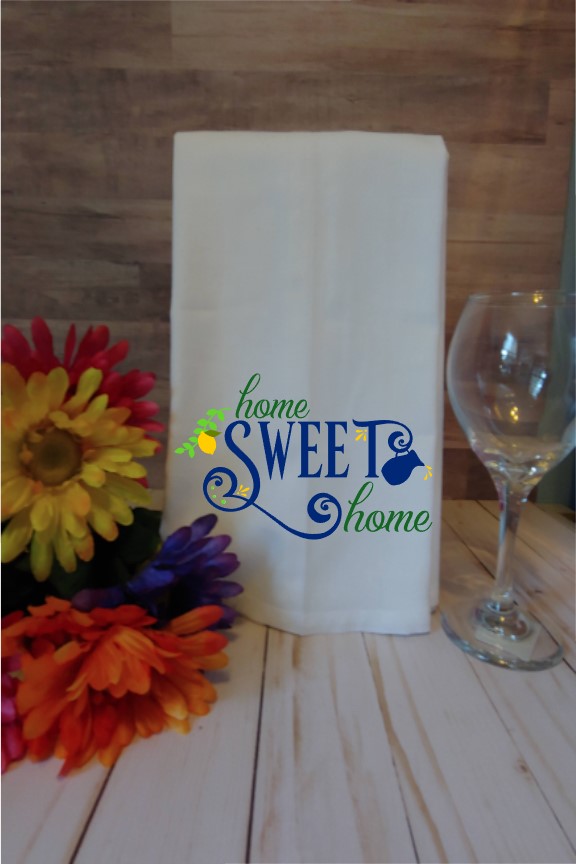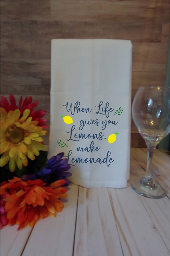 Tea towels or flour sack towels are a quaint and versatile addition to any kitchen. Lemons Kitchen Towel set comes with 2 towels. “When Life gives you lemons, make lemonade” and “Home Sweet Home”. This set has three colors, blue for the writing and yellow and green for the lemons. These towels make a great gift idea for a house warming gift or a hostess gift. They make a great gifts for friends and family, or to keep for yourself. Lone Wolf Craft Studio prides ourselves on selling quality products. These kitchen towels are food safe and durable.