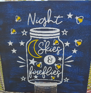 Tags: custom made, night skies, custom made sign, fireflies, wood sign, mason jar, custom sign, hand painted sign, porch sign