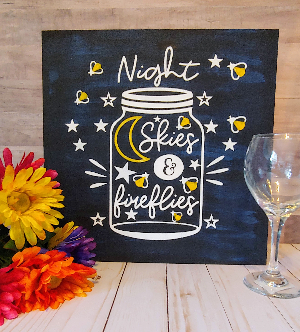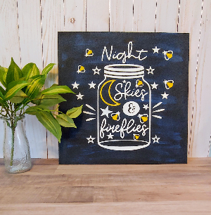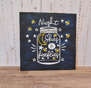 Night Skies & Fireflies Mason Jar wood sign. Custom painted wood sign, hand crafted just for your porch or home.