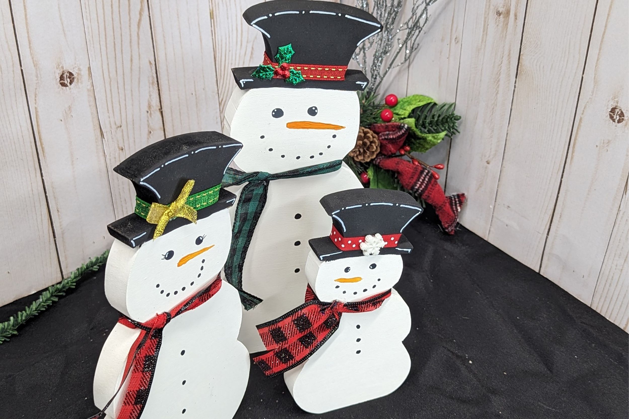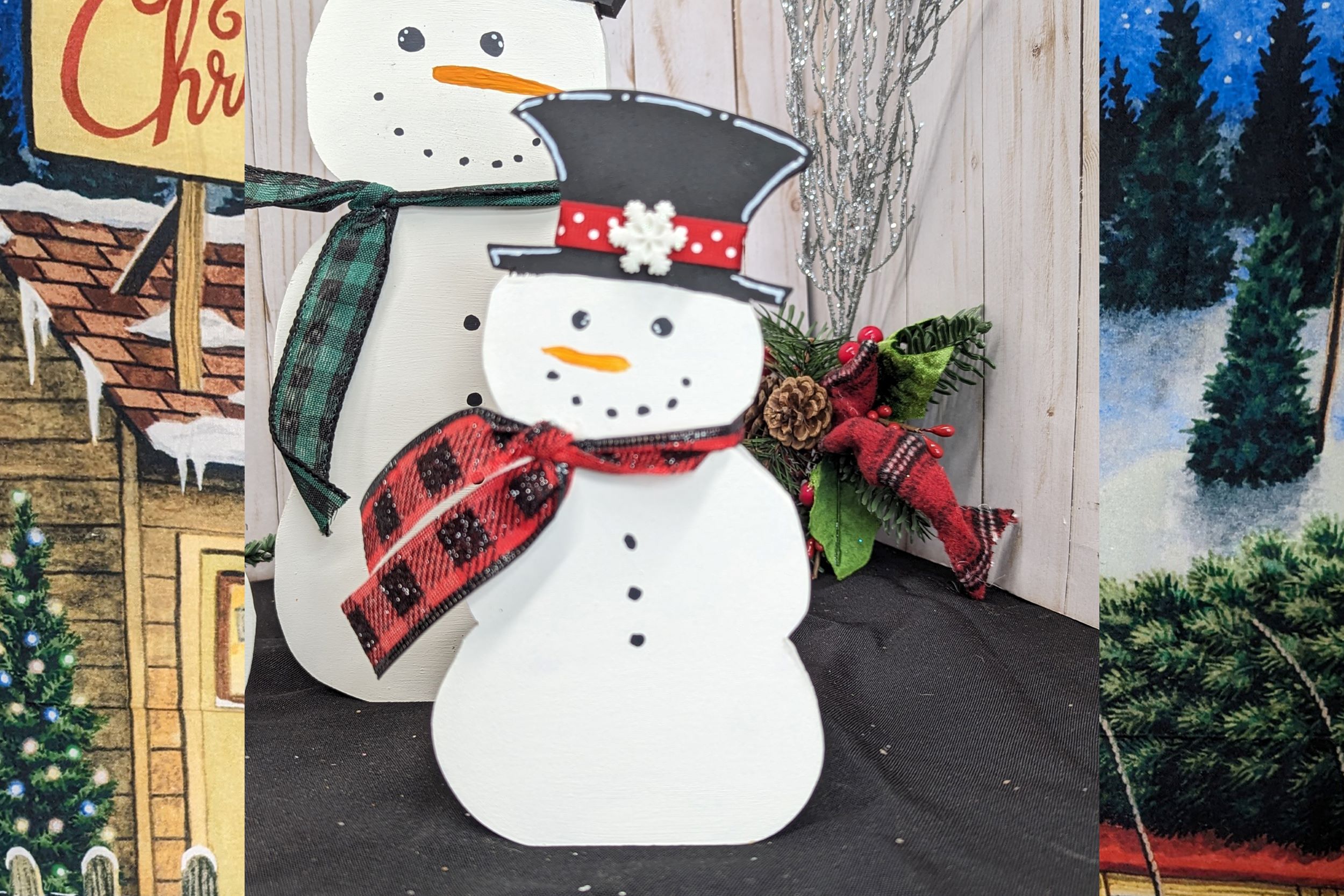 Each snowman is lovingly hand-cut and hand-painted on 3/4-inch MDF wood. They are not only beautiful but also sturdy, so you can display them proudly on any shelf or tabletop.