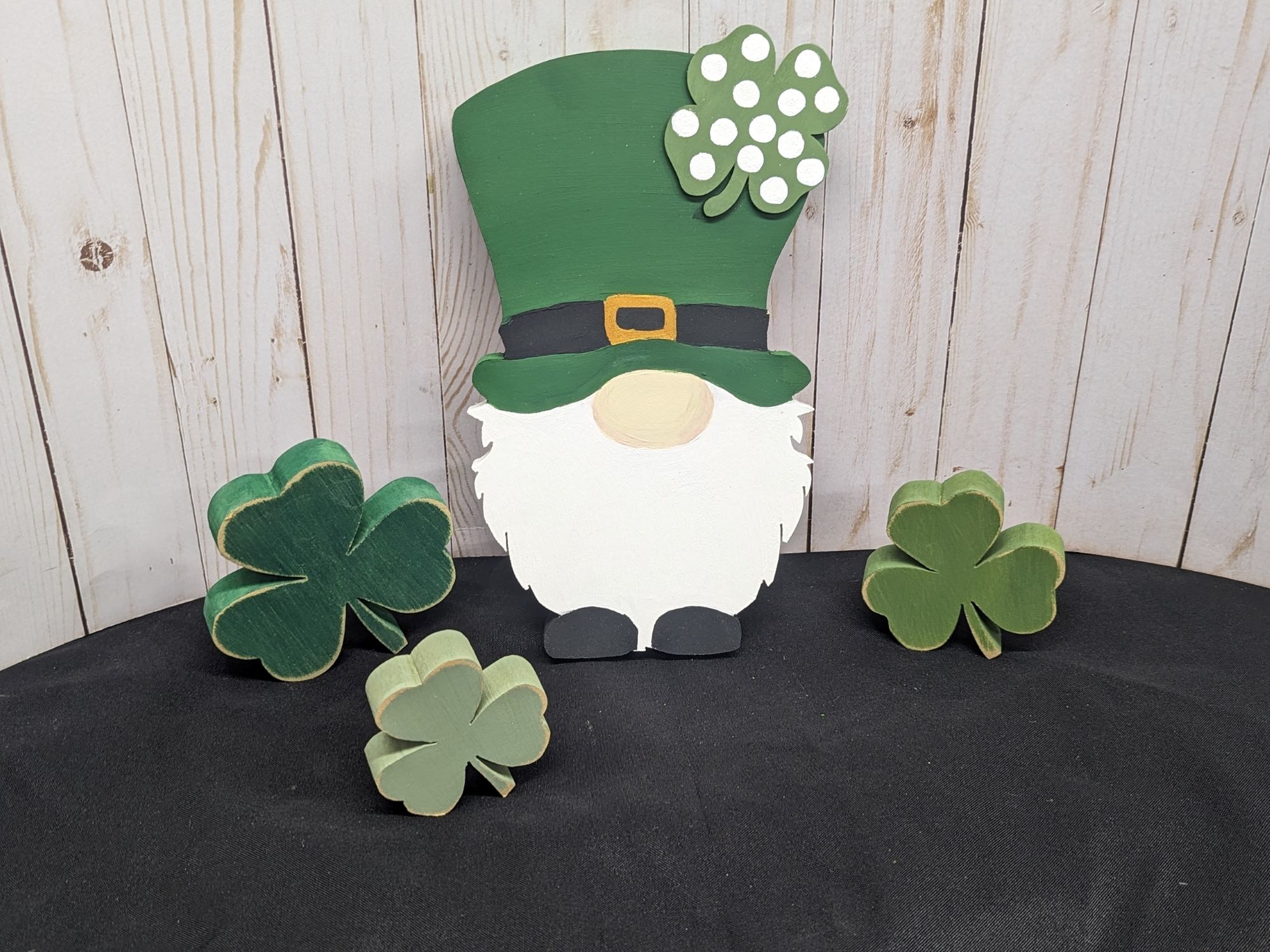 While pictured, the shamrocks are not included. This listing is for the gnome only.