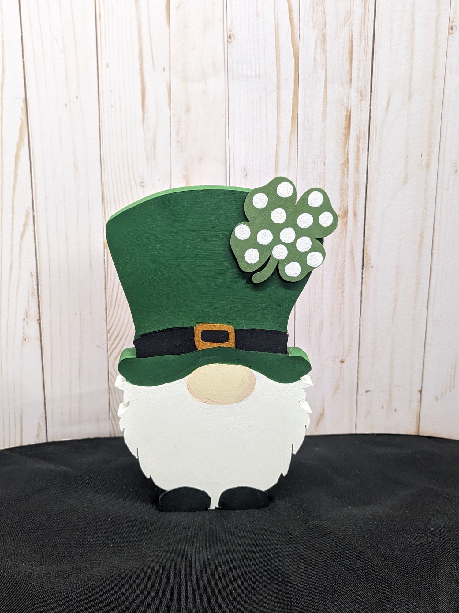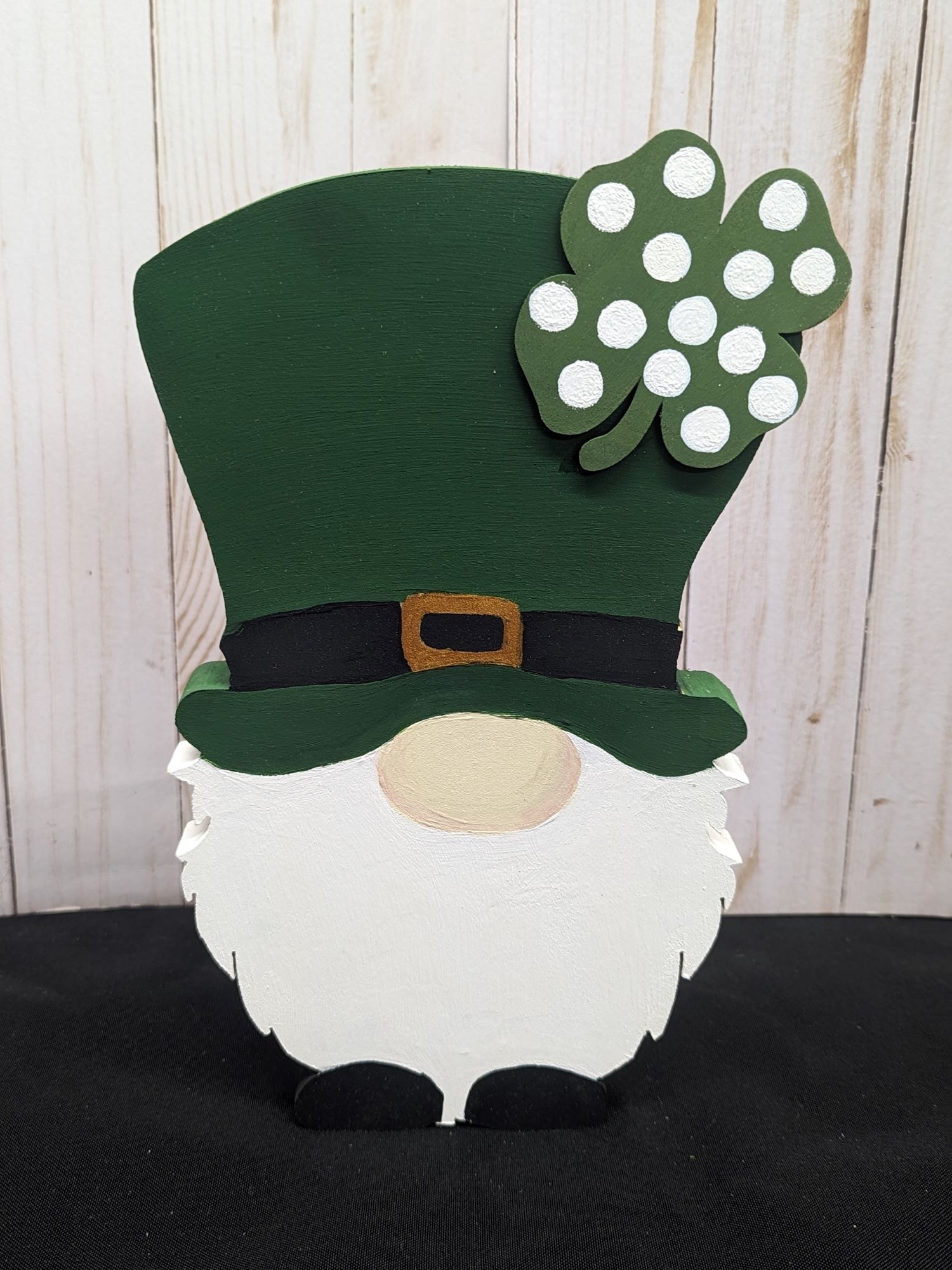 Handcrafted from sturdy half-inch MDF and meticulously hand-painted with non-toxic paint, our gnome boasts a vibrant green top hat adorned with a classic shamrock, a symbol of good luck and Irish heritage. His rosy cheeks and friendly smile are sure to warm even the coldest of hearts, while his sturdy base ensures he’ll stand tall throughout the celebrations.