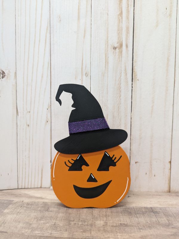 * Small pumpkin (approximately 5 inches tall x 4 inches wide) – wearing a festive witch’s hat!